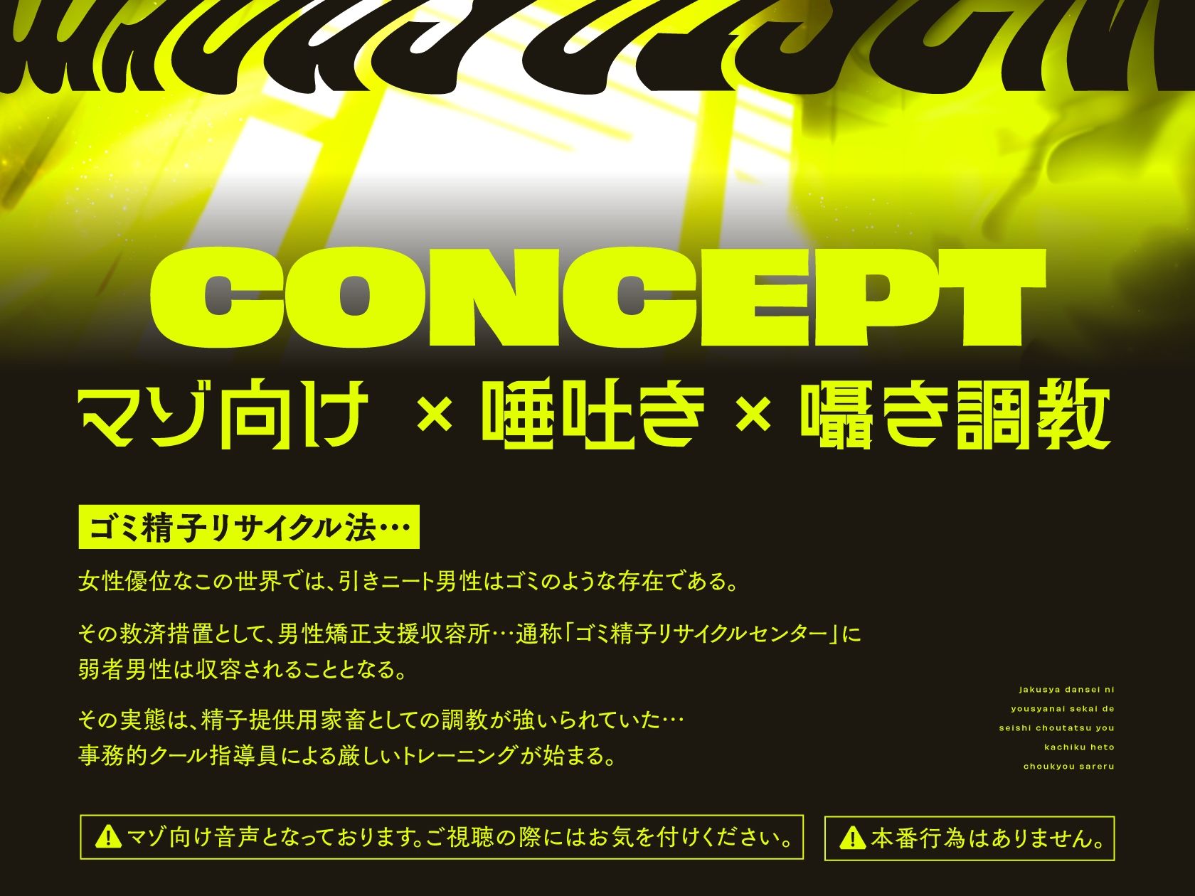【唾吐き調教】 ゴミ精子リサイクルセンター〜弱者男性に容赦ない世界で精子調達用家畜へと調教される〜