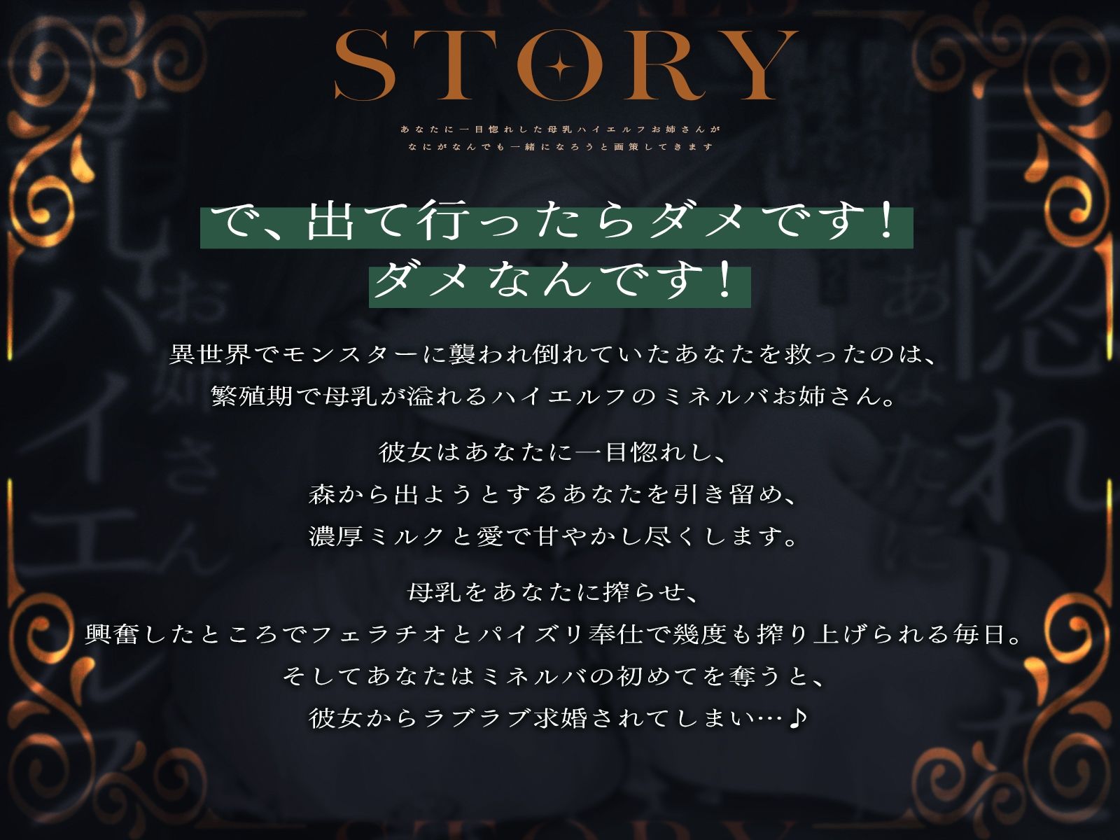 あなたに一目惚れした母乳ハイエルフお姉さんが、なにがなんでも一緒になろうと画策してきます♪(KU100マイク収録作品) あらすじ