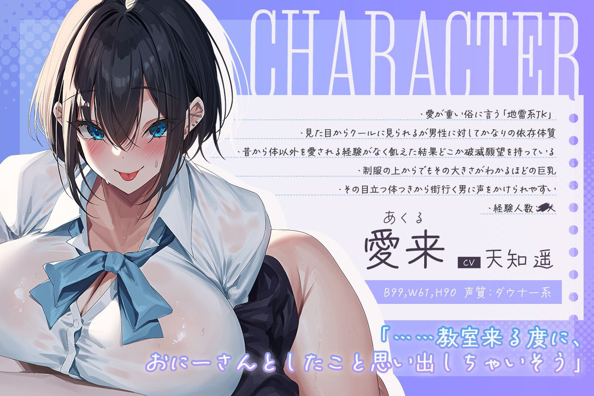 巨乳でクールなダウナー系破滅願望持ちの地雷JKに乳首を弄られ顔を舐められ共依存セックスで中出し要求されちゃうお話♪ あらすじ