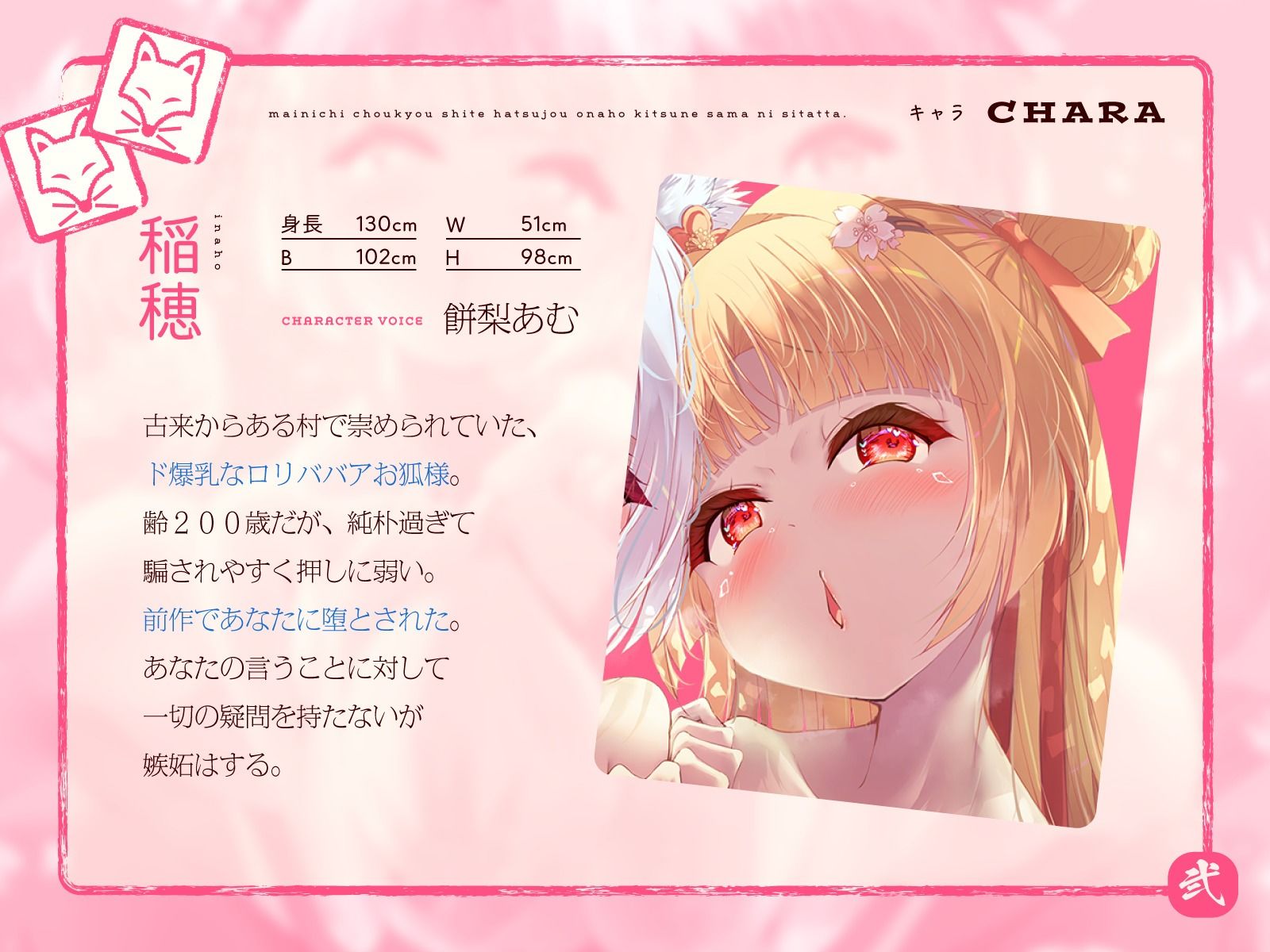 【母性あふれる純情お狐様にちんぽお世話をおねだり。毎日調教して発情オナホ狐様にしたった。2匹目!(KU100マイク収録作品)】 作者名