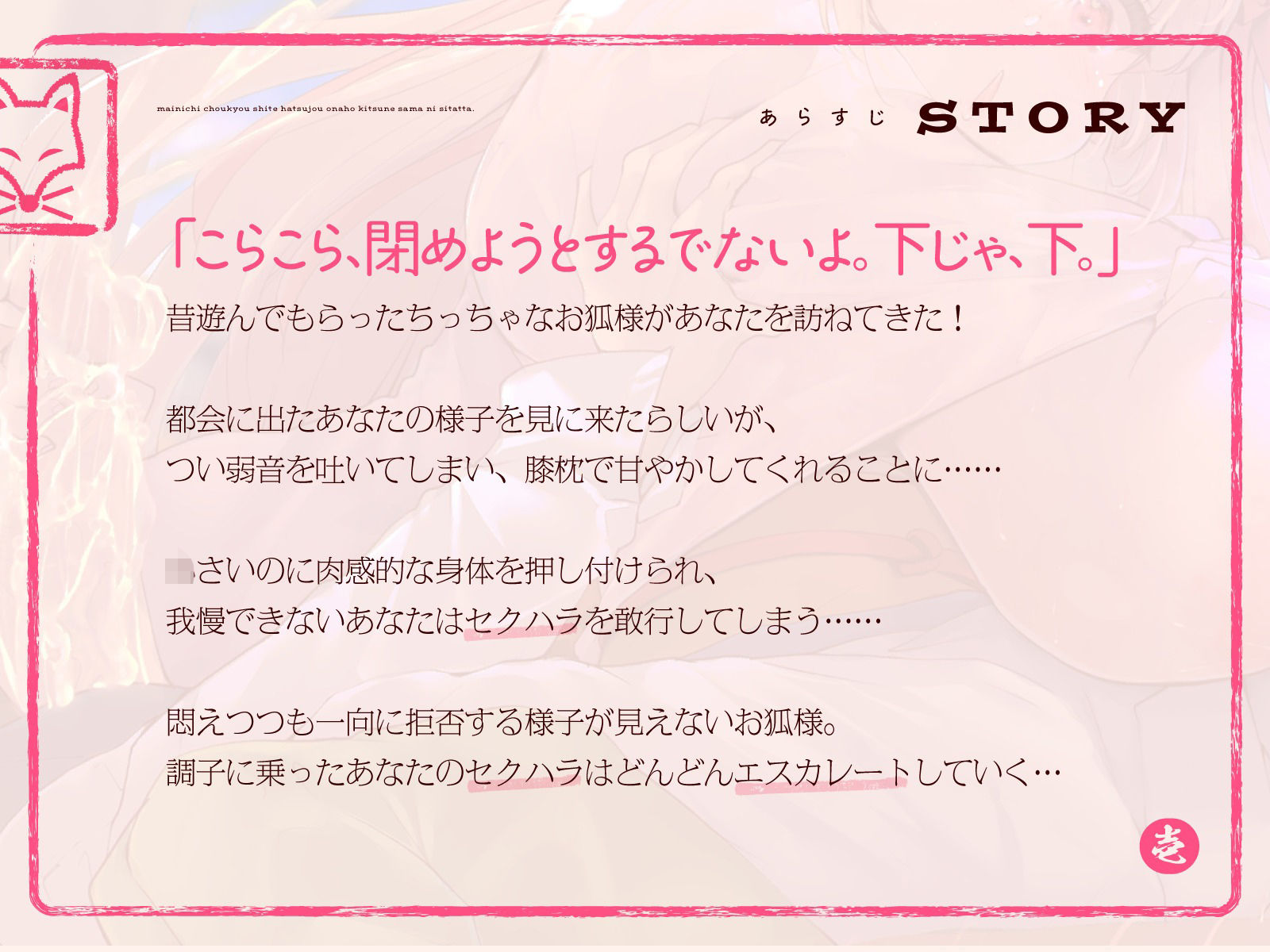 母性あふれる純情お狐様にちんぽお世話をおねだり。毎日調教して発情オナホ狐様にしたった。(KU100マイク収録作品) あらすじ