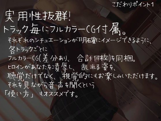ヒロインがあなたを凌●し、乱れる姿を、聴覚だけでなく、視覚的にもお楽しみいただけます。
