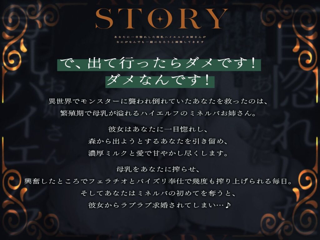 あなたに一目惚れした母乳ハイエルフお姉さんが、なにがなんでも一緒になろうと画策してきます♪(KU100マイク収録作品)